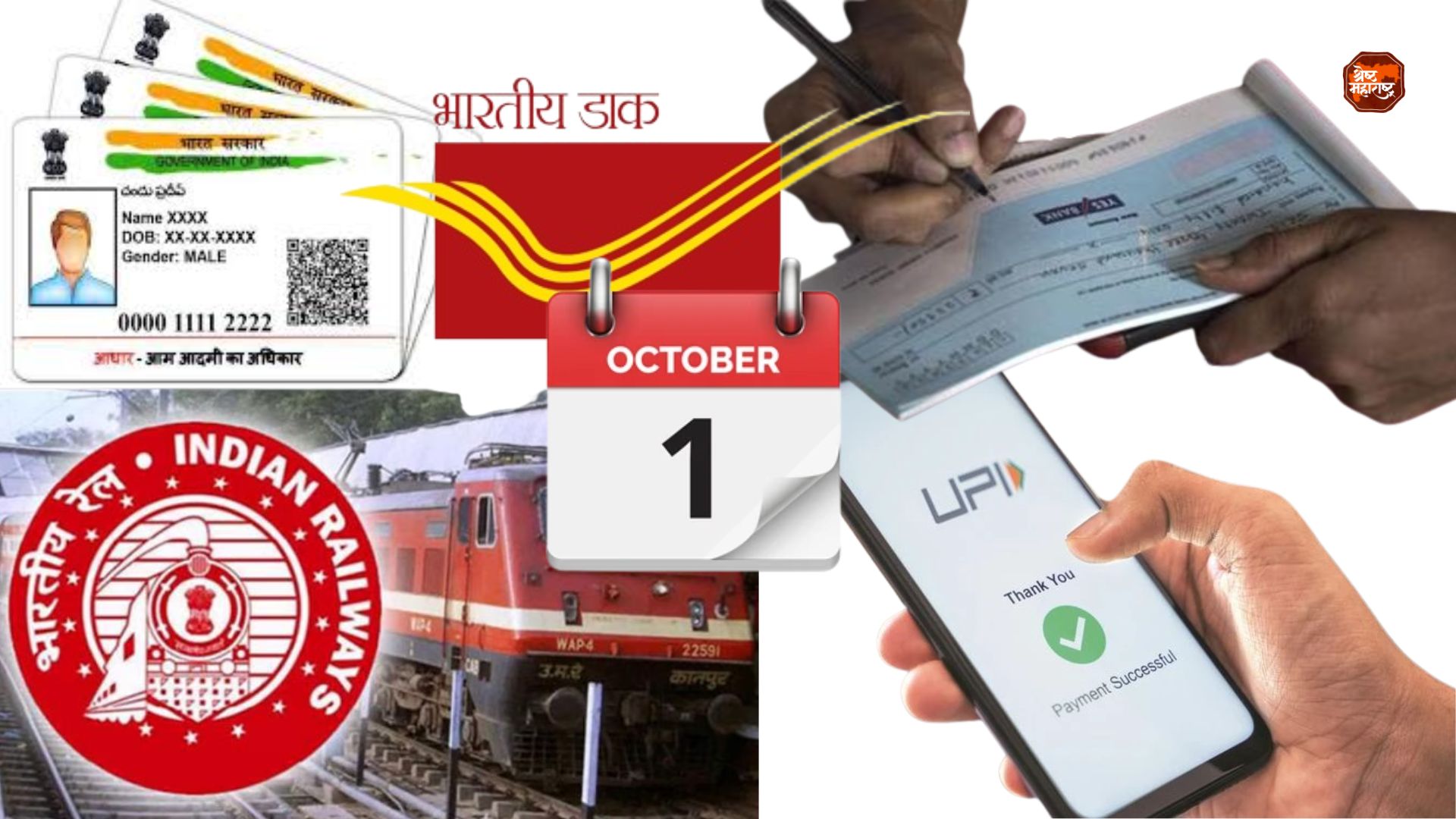 आज दिनांक 1 ऑक्टोबरपासून युपीआय, रेल्वे प्रवास आणि आधार अपडेटशी संबंधित काही नव्या नियमांच्या अंमलबजावणीला